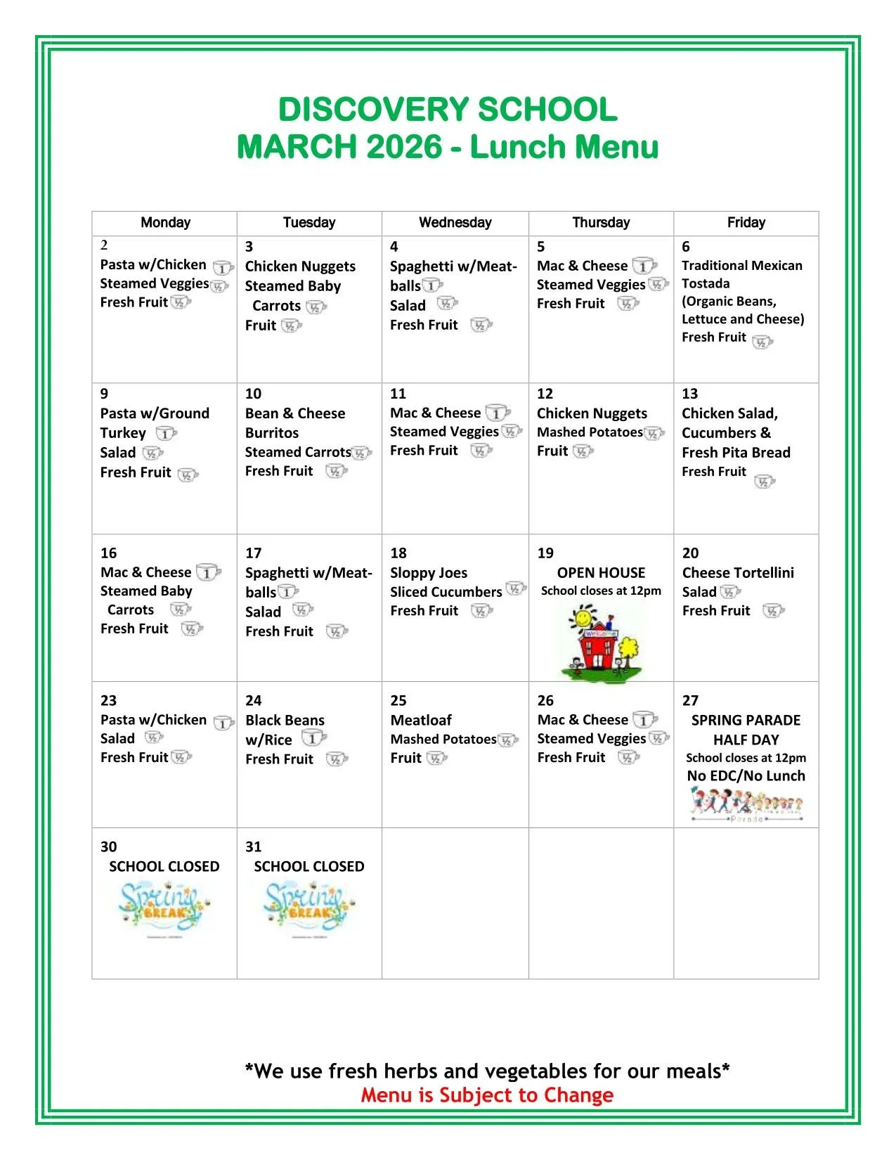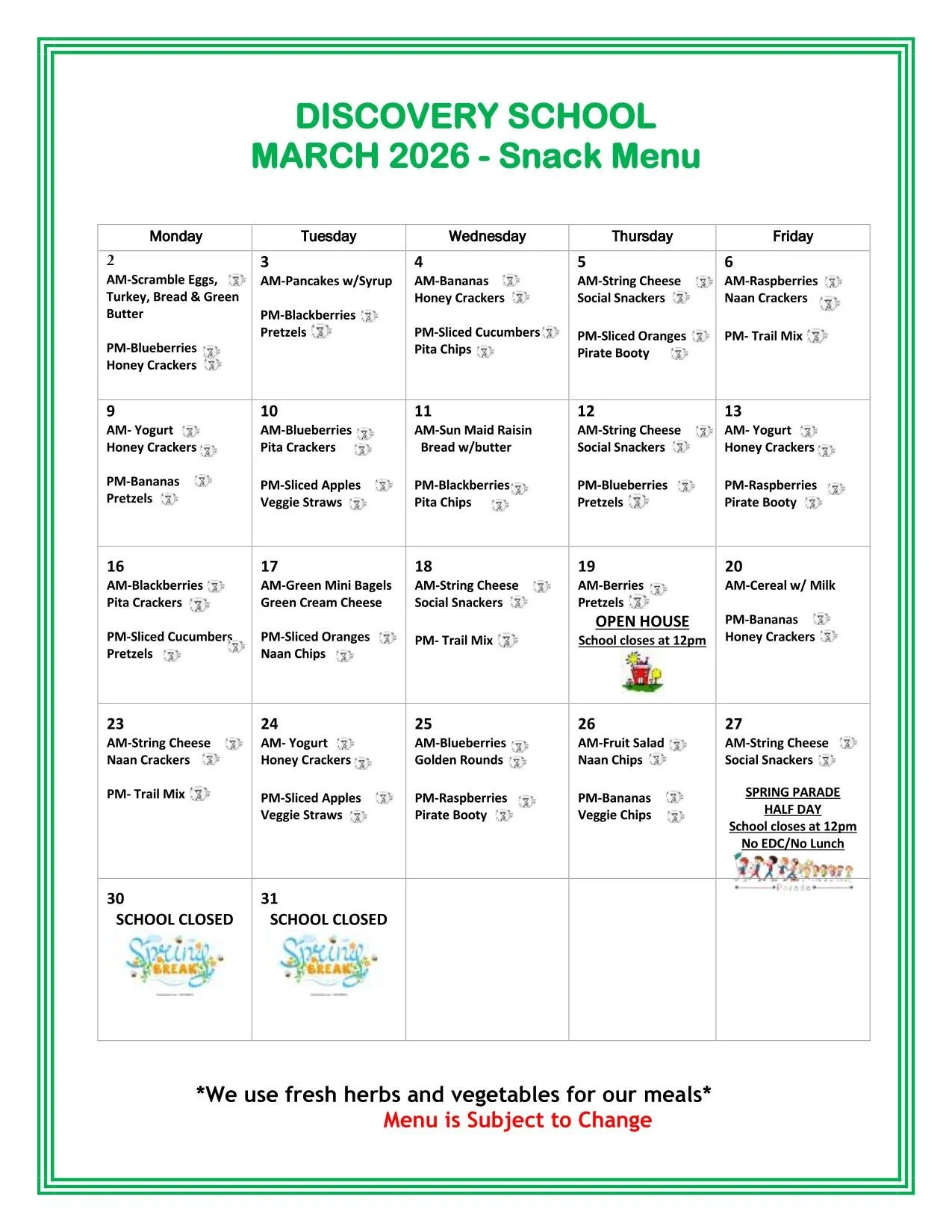 Snack and Lunch Menus
